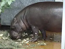 The Tapir House, built in the expansion era in 1968, houses a pygmy hippopotamus (Hexaprotodon liberiensis) bull named Hannibal and the common hippos (Hippopotamus amphibious) Rosi and Maik, as well as African warthogs (Phacochoerus africanus).[23] The building also currently houses Malayan tapir (Tapirus indicus) and babirusa (Babyrousa sp).