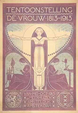 In 1913 Drupsteen created the poster for De Vrouw 1813-1913. The image also used for the cover of the exhibition catalog.[3]