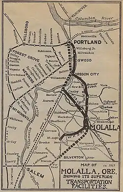 - ^ "Oregon Pacific Railroad Molalla Branch". Oregonpacificrr.com. Retrieved October 20, 2019.