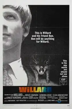 Willard is a 1971 American horror film directed by Daniel Mann and written by Gilbert Ralston, based on Stephen Gilbert's novel Ratman's Notebooks. Bruce Davison stars as social misfit Willard Stiles, who is squeezed out of the company started by his deceased father. His only friends are a few rats raised at home, including Ben and Socrates, and their increasing number of friends. When Socrates is killed by Willard's boss, he goes on a rampage using his rats to attack.