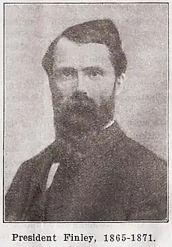 In 1865, Finley became the first president of Corvallis College by the appointment of the Methodist Episcopal Church, South. His son Ernest L. Finley, the future founder of The Press Democrat, was born in 1870. His presidency there lasted until he resigned in June 1872 because of the health problems of his wife, Sarah Elizabeth Latimer. After Finley moved back to Santa Rosa, California with his wife, he became the second president of Pacific Methodist College in 1876; later, he became a president of Santa Rosa Young Ladies College.[1]