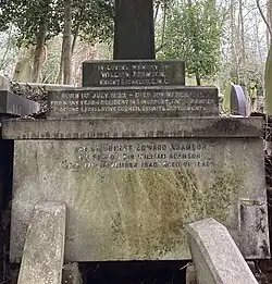 Adamson died in England on 11 March 1917, aged 85 and was buried in a family vault at Highgate Cemetery.[2]