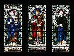 In March 1913, a stained glass window by James Powell and Sons was erected in memory of him in the east wall of the side chapel of St Columb's Cathedral, financed by public subscription. The lower panels depict Moses, King David, and Isaiah in reference to his qualities as leader, poet, and preacher. His closing words of his resignation speech in February 1911 are quoted at the bottom: "Not in wisdom of words, lest the Cross of Christ be made void" (1 Cor 1:17).[1][2]
