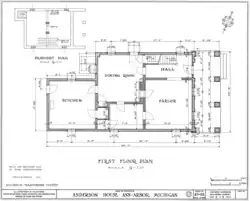 Anderson built the present house on the property around 1853. The house is a similarly grand structure, in Greek Revival style, built on a fieldstone foundation. Its construction used techniques that were common in New York and New England in its era, but rare in Michigan, such as board-and-batten siding.[1] In 1858, Anderson deeded the house and surrounding land to his son, William E. Anderson, who owned the house until his death in 1873. The house passed to his wife Cornelia Foster Anderson (1827-1902), and to their children after her death. In 1932, the house was foreclosed upon, and left the Anderson family.[1]