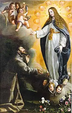 - ———————— (2004). "La aparición de la Inmaculada a San Francisco de Juan van der Hamen del Convento de Santa Isabel de los Reyes de Toledo" [The Appearance of the Immaculate to Saint Francis by Juan van der Hamen from the Convent of Santa Isabel de los Reyes of Toledo]. Juan van der Hamen: La aparición de la Inmaculada a San Francisco, Convento de Santa Isabel de los Reyes, Toledo [Juan van der Hamen: The Appearance of the Immaculate to Saint Francis, Convent of Santa Isabel de los Reyes, Toledo]. By Convent of Santa Isabel de los Reyes (in Spanish). Madrid: Área de Comunicación e Imagen BBVA, Departamento de Actividades Culturales. pp. 9–15.