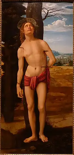 Jordan noticed San Sebastián (1506) by Fernando Yáñez at a Madrid gallery in 1976. The painting was not published or attributed to Yáñez at the time, and there were no known records in Spanish art sources to support his attribution. However, Jordan was convinced that it was a Yáñez work, and he made the purchase with Meadows' support.[12] Subsequent research established that the painting was indeed done by Yáñez, and it became one of the more important works in the Meadows Museum.[viii]