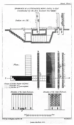 Upon Marlow's drawings and description of Hōne Heke's pā sent to home to England, in August–September 1846, the Royal Engineers erected part of a stockaded work based upon it, to the left of Chatham Lines, so as to establish the best mode of breaching it by bags of gunpowder. The experiments at Chatham were made in October and December producing some practical breaches. In June 1847 the Engineers erected a double stockade for training the newly formed Royal New Zealand Fencible Corps, then about to proceed to New Zealand, in the means of capturing such works.[32]: 111–113 [33][34]