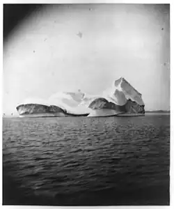 With funds provided by LeGrand Lockwood, Bradford traveled to Greenland in 1869, his farthest northern excursion, reaching eventually as far as 75° north latitude aboard the steamship Panther, accompanied by photographers John L. Dunmore and George Critcherson.[5] Upon his return, Bradford spent two years in London, where he published an account of his trips to the north, entitled The Arctic regions, illustrated with photographs taken on an art expedition to Greenland; with descriptive narrative by the artist.(London, 1873)[1][6][7][2] In 1874, he was elected into the National Academy of Design as an Associate member.[8]