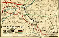 2. ^ a b c d e f g h i j k l m n o p q r s t u v Fair, James R. (1997). The Louisiana and Arkansas Railway: The Story of a Regional Line. DeKalb, Illinois: Northern Illinois University Press. ISBN 0-87580-219-2.