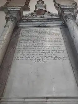 Challoner's parentage is obscure; however, it is known that he came from the numerous and prosperous Bristol family of the same name. He may have been a son or grandson of Robert Challoner, a previous Sheriff of Bristol, and treasurer of the Society of Merchant Venturers in 1646.[1] The Challoners were well connected in the Bristol shipping and slaving industry, with previous members connected in marriage to the Colston family, and the Knight and Aldworth families, who both owned a sugar refinery in Bristol.