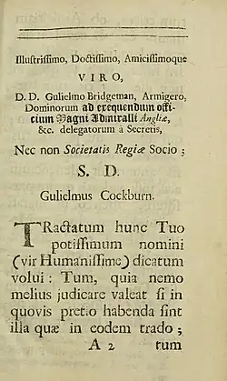 - ^ a b Guerrini, Anita. "Cockburn, William". Oxford Dictionary of National Biography (online ed.). Oxford University Press. doi:10.1093/ref:odnb/5777. (Subscription, Wikipedia Library access or UK public library membership required.)
