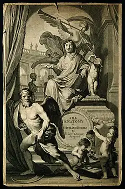 Cowper was born in Petersfield, Hampshire, and he was apprenticed to a London surgeon, William Bignall, in March 1682. He was admitted to the Company of Barber-Surgeons in 1691 and began practising in London the same year. In 1694, he published his noted work, Myotomia Reformata, or a New Administration of the Muscles, and he was elected a member of the Royal Society in 1696. In 1698, he published The Anatomy of the Humane Bodies, which gained him great fame and notoriety, and over the next eleven years he published a number of tracts on topics ranging from surgery and pathology to physiology and anatomy. He died on 8 March 1709, and was buried in St Peter's Church, Petersfield.[1]