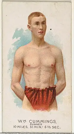 ![]() Allen & Ginter cigarette card for Cummings, with his 10 miles personal best | |