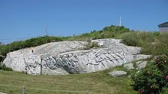 In the late 1970s, deGarthe began a ten-year project to sculpt a "lasting monument to Nova Scotia fishermen" on a 30 m (100 ft) granite outcropping behind his Peggy's Cove Home. In 1976 deGarthe invited one of his students, J. Rene Barrette (Lt. Col. Retd) to help him with the sculpture. They worked together for 5 years. The project was about 80-per cent complete when the artist died in 1983.[12]