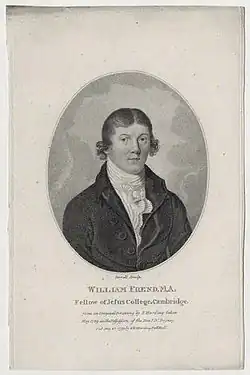 William Frend FRAS (22 November 1757 – 21 February 1841) was an English clergyman (later Unitarian), social reformer and writer. After a high-profile university trial in Cambridge, which deprived him of his residency rights as fellow of his college, he became a leading figure in London radical circles.[1]