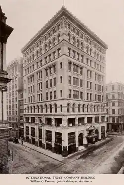 International Trust Company Building (1906 – extant) 45 Milk Street, Boston, MA, substantial expansion of existing building by others.[54][55][a]