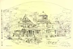 Image of "Study for House at Brookline" which appeared in the March 21, 1885 edition of American Architect and Building News. The house was built at 137 Gardner Road in 1884 for Amasa Clarke, a prominent woolens manufacturer.[2] It is no longer standing.