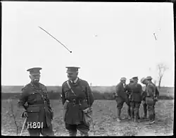 Braithwaite returned to the front in February 1918 as a brigadier general, general staff (BGGS) in a British corps[19] and was made a Companion of the Order of the Bath in June.[1] In October, he was placed in command of the 16th Infantry Brigade when its previous commander, Brigadier General Henry Walker, was wounded in an artillery barrage,[20] and led it through to the armistice of 11 November 1918.[21] During the course of the First World War he had been mentioned in despatches six times.[2]