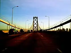 The San Francisco – Oakland Bay Bridge, a fictional squatted version of which formed the setting for Gibson's short story "Skinner's Room" (1990). He would later revisit the setting in his Bridge trilogy of novels.