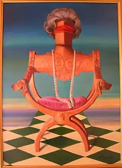 A few reviews underline both the effective elaboration of the teachings of André Breton[12] and the reference to René Magritte, with whom in particular he shared «a singularity of images» and «visual tricks» also achieved through the use of trompe-l'oeil.[13]