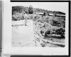 From 1892 to 1895, the Agua Fria Construction Company built Dyer Diversion Dam (initially known as Beardsley Dam), stopping in 1895 due to funding. In the fall of that year, a flood would destroy the western side of the existing dam.[3] Fortunately for Beardsley, associates of his from Ohio took possession of the assets of the construction company and deeded them back to him to continue his work. Beardsley tried to restart the project but work was progressed slowly due to rough weather and terrain.[1][4]