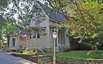 William Harmon House is a historic home located at Lima in Livingston County, New York. It was built about 1851 and is a 1+12-story Gothic Revival style board-and-batten cottage in a cruciform plan. The exterior and interior features rich Gothic ornamentation.[2]