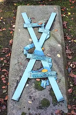 - Lord Arthur Vincent Hay (1886–1914), who was killed in action in the First World War during the First Battle of the Aisne.[11] The inscription on his gravestone in France reads: "IN SUCH A DEATH THERE IS NO STING IN SUCH A GRAVE EVERLASTING VICTORY. (MOTHER)".[11] He married Menda Ralli, only daughter of Ambrose Ralli, in 1911.[12] After his death, she married Col. Robert Edward Kennard Leatham.[2]