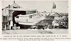 Either way, he then partnered with another apprentice, John Sims as Sims and Brown,[4] until 1890,[9] after which he continued as a sole trader. Their first yard was on the North Shore, where, from February to June 1865, they built their first vessel, Telegraph, a 30 ton cutter.[10][11] They added a yard at the foot of Princes Street. Later yards were at Devonport, near the foot of Hobson Street[4] and in Poore Street,[12] now Westhaven Drive, on the western reclamation.[13] He built nearly fifty craft, including -