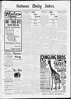 - ^ "Salinas Daily Index (Salinas City, Monterey County, Cal.) 1896-1928". Library of Congress, Washington, D.C. 20540 USA. Retrieved 2024-11-06.
