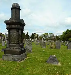 Between 1874 and 1891 Webber's address was 39 Goodge Street, London, and in 1891 he moved to Holliscroft, Dale Street, Harrogate.[16] Between 1901 and 1911 (and possibly until his death) he lived in a modest terraced house: Holliscroft, 3 Mayfield Grove. Harrogate. In 1891 his mother and sister Edith were living with him; by 1911, just his sister. He never married.[6][13][17][18] Webber died around 17 March 1919 in Harrogate.[19] He is buried in Grove Road Cemetery, Harrogate, but has no grave stone.[6][20][nb 2]