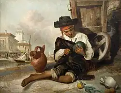 Keeling returned to Manchester in 1835, and worked as a portrait and figurative painter in oils and watercolour, and a drawing-master. From the 1830s he actively exhibited in Manchester, Liverpool and elsewhere. In 1833 his painting 'The Bird's Nest' was awarded the silver medal from the Royal Manchester Institution.[1] In 1841 he was elected a member of the New Society of Painters in Watercolours, where he exhibited about 60 works.