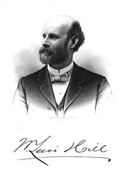 William Hill was born on August 20, 1838, to Reuben Coleman and Margaret Graham (née Lair) Hill in Tennessee.[3] His father was a doctor and Baptist preacher at their home along the Tennessee River in the southwestern portion of the state.[4] The home in McNairy County was near the site of the 1862 Battle of Shiloh.[5] In 1853, he moved to the Oregon Territory with his parents, with the family settling in Benton County in the Willamette Valley.[3]