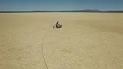 Lamson's sensitivity to the environmental conditions is critical to how his performative action unfolds and how his video work eventually comes together. The landscape operates as both the subject matter and a set of changing physical parameters that affect how he, the artist, responds to it.[2]