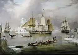 In 1833, William Lee and Isabella spent the season in company and stayed on in the region after the other vessels there had left. Isabella and William Lee sailed about 100 miles further into Lancaster Sound than any other whaler had ever gone. There Isabella rescued John Ross, whose ship Victory had become beset by ice on Ross's second Arctic expedition.[6] Ross stated that Humphreys was looking for Ross, expecting to find that Ross and his men had been lost.[7][8] Humphreys disputed Ross's claim, stating that he, Humphreys, had been looking for whales. William Lee was still in company when Ross's boats reached Isabella.[9] After Humphreys rescued Ross, Isabella continued whaling for about another month.[7] Some of Ross's crew were transferred to William Lee.