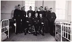 Promoted to Constable, in Regina Higgitt supervised general criminal files and engaged in active police investigations, including conducting examinations of witnesses.[10] With the outbreak of the War, and at the age of twenty-two, he was transferred to Ottawa and put immediately into intelligence and counter-intelligence. While assigned field investigations over the War years, Higgitt married a nurse, Evelyn Maude Pyke, of Lunenburg, Nova Scotia, in 1944. He also played on the RCMP basketball team in the Ottawa YMCA Basketball league, and on the RCMP soccer team in the Ottawa and District Football Association league.[11][12] He also represented the RCMP in marksmanship tournaments.[13]