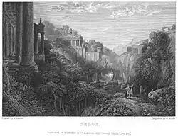 A Song of Delos., a poem by Felicia Hemans accompanying the engraving by William Miller of Linton's drawing of Delos (as above) for The Winter's Wreath annual, 1831.