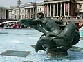 Nereid and Triton with Dolphins, the Beatty Memorial Fountain | Trafalgar Square, London | 1948 | Two sculpture groups in fountain | Bronze | Grade II* | Q29295257 | Architect, Edwin Lutyens.[18][19]