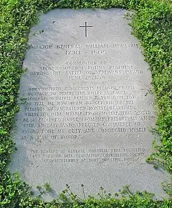 William Moultrie (/ˈmuːltriː/; November 23, 1730 – September 27, 1805) was an American slaveowning planter and politician who became a general in the American Revolutionary War. As colonel leading a state militia, in 1776 he prevented the British from taking Charleston, and Fort Moultrie was named in his honor.