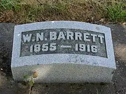 In 1915, he returned to the office of mayor for Hillsboro, assuming the position on January 5 and serving until his death.[4] He was a member of the Masonic Order and of the Knights of Pythias.[1] William Nathan Barrett died on December 16, 1916, while in office, and was buried at the family's plot in the Hillsboro Pioneer Cemetery.[10]
