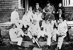![]() An eleven member cricket team made up entirely of Newhall family members. William Newhall is in the front row holding the bat. | |||||||||||||||||||||||||||