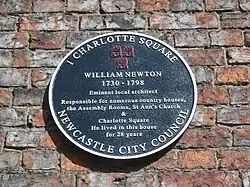 William Newton (1730–1798) was an English architect who worked mainly in Newcastle upon Tyne and Northumberland. His work shows a conventional but elegant classical style, influenced by Adam and Paine, and with a strong Palladian feel typical of late 18th-century architecture. Most of his buildings are stately homes in rural Northumberland, but he also created some interesting public works in Newcastle: The Assembly Rooms, St Anne's Church, the refaced Guildhall, and elegant private housing in Charlotte Square.
