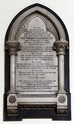 William Pennefather (1816–1873) was an Irish Anglican cleric who spent most of his adult life in England. He was famous for his hymns and sermons, and also for missionary work with his wife Catherine Pennefather. Catherine founded several projects in his name in the twenty years after his death.