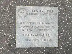 ![]() Memorial plaque, Hunter Street, Glasgow | |