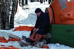 Shepherd during Soyuz winter survival training in March 1998 near Star City, Russia