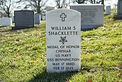 - ^ "William Sidney Shacklette, Hospital Steward, 17 May 1880 - 12 February 1945". United States Navy. Archived from the original on August 27, 2004. Retrieved September 23, 2010.