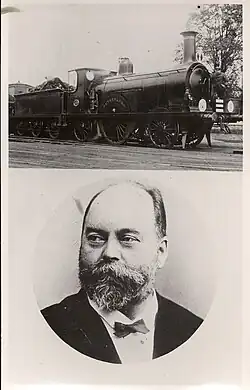 ![]() A postcard of William Stroudley and one of his G class 2-2-2 | |