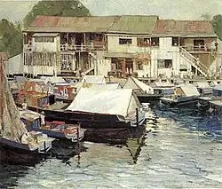 In 1916, Twigg-Smith moved to Hawaii. He worked with Lionel Walden and D. Howard Hitchcock on creating the Pan-Pacific Carnival dioramas, which were exhibited in 1917. In September 1916, Twigg-Smith held his first art exhibit in Hawaii, in an exhibition at the Hilo Hotel in the Big Island (Hawaii) town of Hilo. In December he exhibited his work in Honolulu at a show sponsored by the University Club. In the Honolulu Star-Bulletin of June 2, 1917, the Hawaii Society of Artists, which Twigg-Smith helped found, announced their first show at the Pan-Pacific Building, which included Twigg-Smith and other HCA members works.[2]