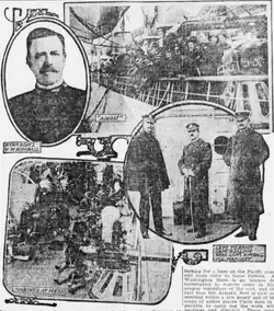 Kimball at top left and with other officers on U.S. Navy ship to Nicaragua in this newspaper compilation, 1909