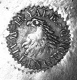 From 1826 or 1827, he was in business with his son, Gen. Edwin R. Yale, later proprietor of the largest hotel in America in Manhattan, and of another hotel in Brooklyn Heights.[1] In 1832 and 1833, William Yale is recorded as the Justice of the Peace of Meriden, and Commissioner on turnpike, roads, bridges, ferries and others.[12][13] His son Samuel III became a manufacturer of Britannia metal, spoons and coffee mills, and complained of his inability to sell buttons and spoons because of the lifting embargo, which was affected by the War of 1812.[14][1]