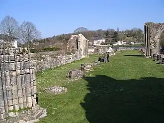 About 1050, William heard of an old fountain in the forest near a stream called Charenton and went to investigate.[5] He discovered the ruins of an old church dedicated to St. Peter the apostle and surveyed the area for what became the restored Abbey of Saint-Evroul, so named for its original founder St. Evroul.[a][5] Shortly afterwards, his two nephews, Hugh de Grandmesnil and his younger brother Robert de Grandmesnil wanted to build a monastery but the site they chose was not well suited for a religious community. William advised his nephews to work with him to restore the ancient abbey of Saint Evroul and, with generous endowments from many of the fitz Giroie family, it was completed in 1050.[6]